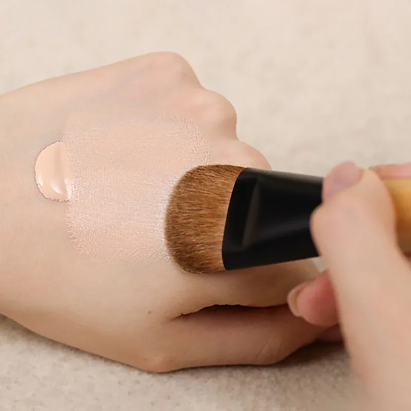 A flat foundation brush with a slightly rounded edge, designed to create a smooth, flawless, even finish.